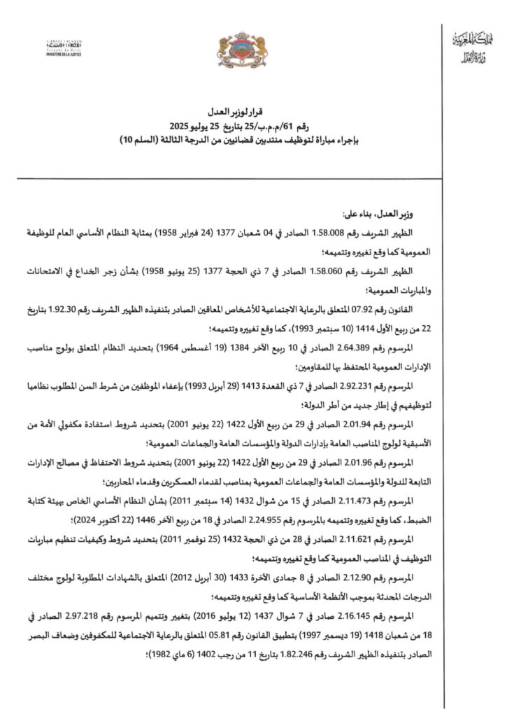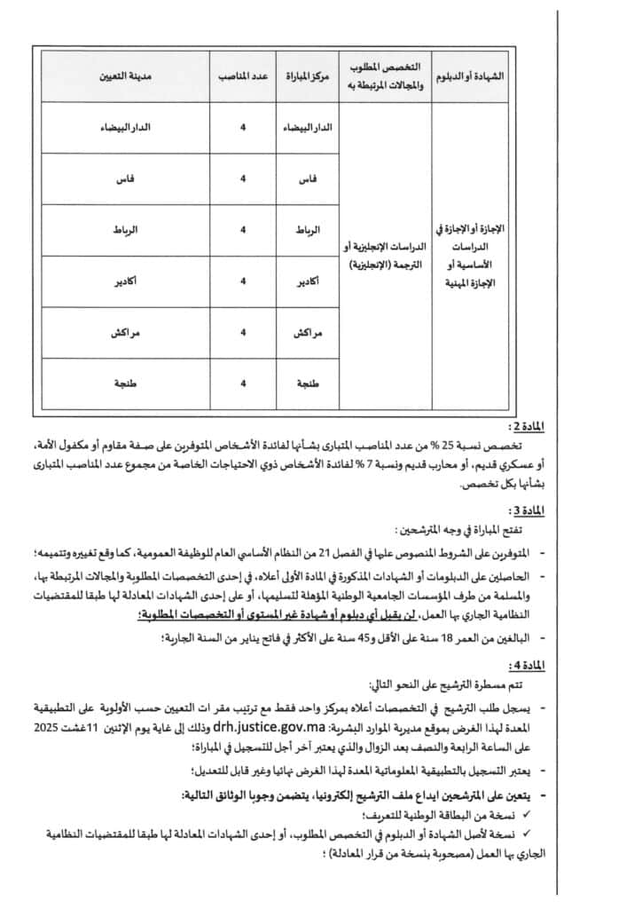 Ministère de la Justice 2025: Concours de recrutement (74 Postes)