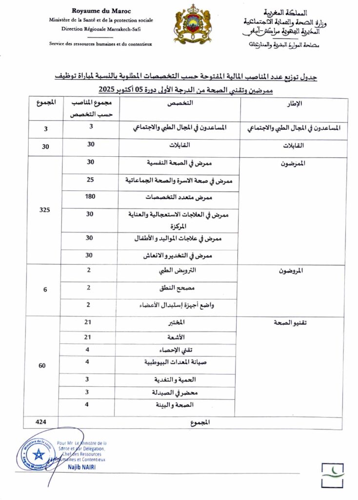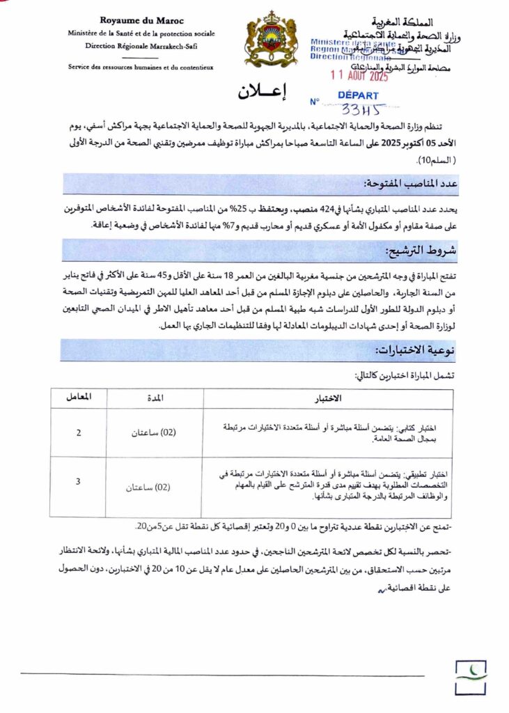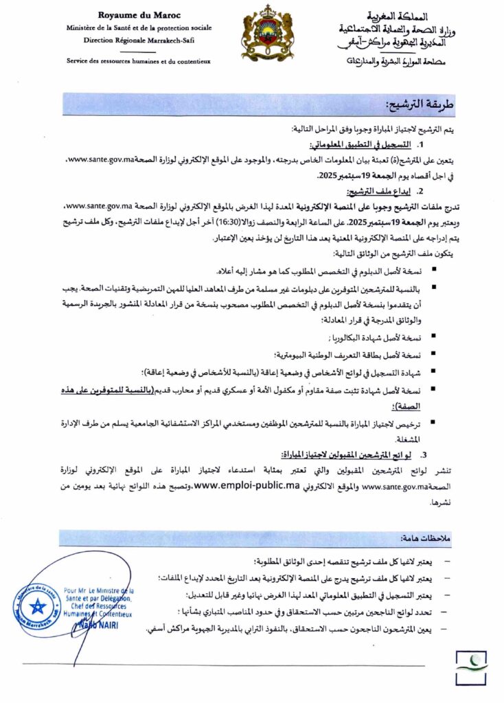 La Direction Régionale de la Santé de la Région Marrakech-Safi: Concours de Recrutement (424)