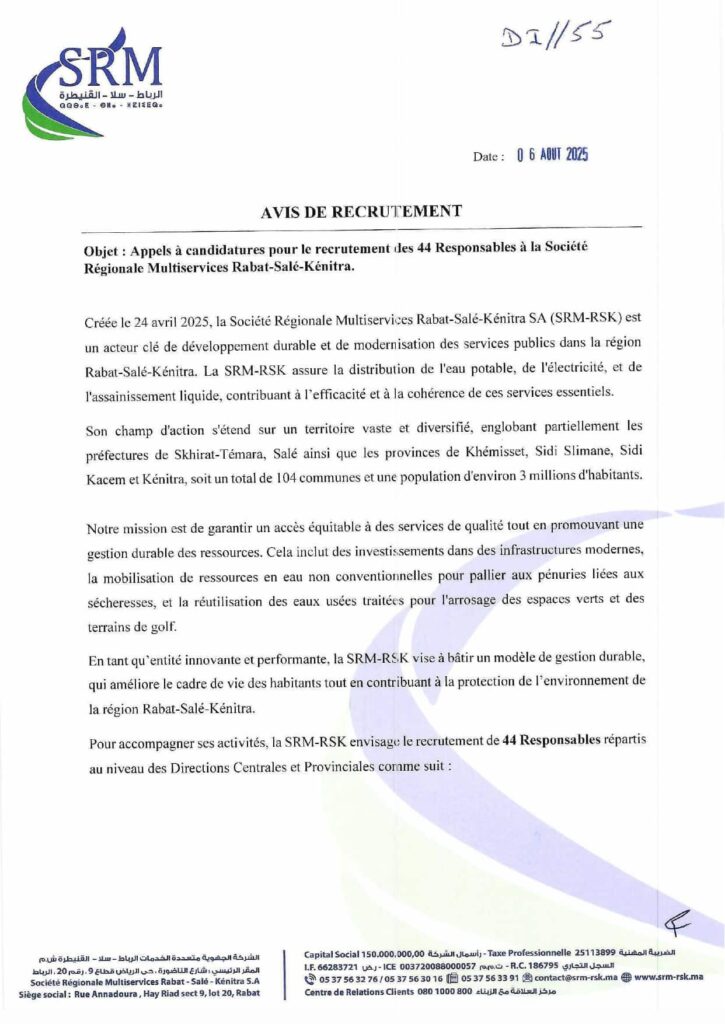 Rabat-Salé-Kénitra 2025 (44 Postes)